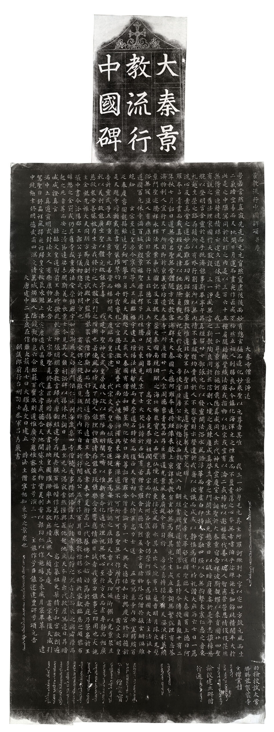 “O grande imperador Kao-Tsung (que subiu ao trono em 650) seguiu respeitosamente as pegadas dos seus ancestrais. Ele fecundou a verdade, lhe deu resplendor e edificou templos luminosos[12] em todas as províncias. Cumulou Olopen[13] de novos títulos e o instituiu guardião do império e senhor da grande Lei. A fé foi, assim, espalhada nas dez vias.[14] O império teve sementes fecundas de grande alegria. Os templos encheram cem cidades, e as famílias foram enriquecidas por uma admirável felicidade.”