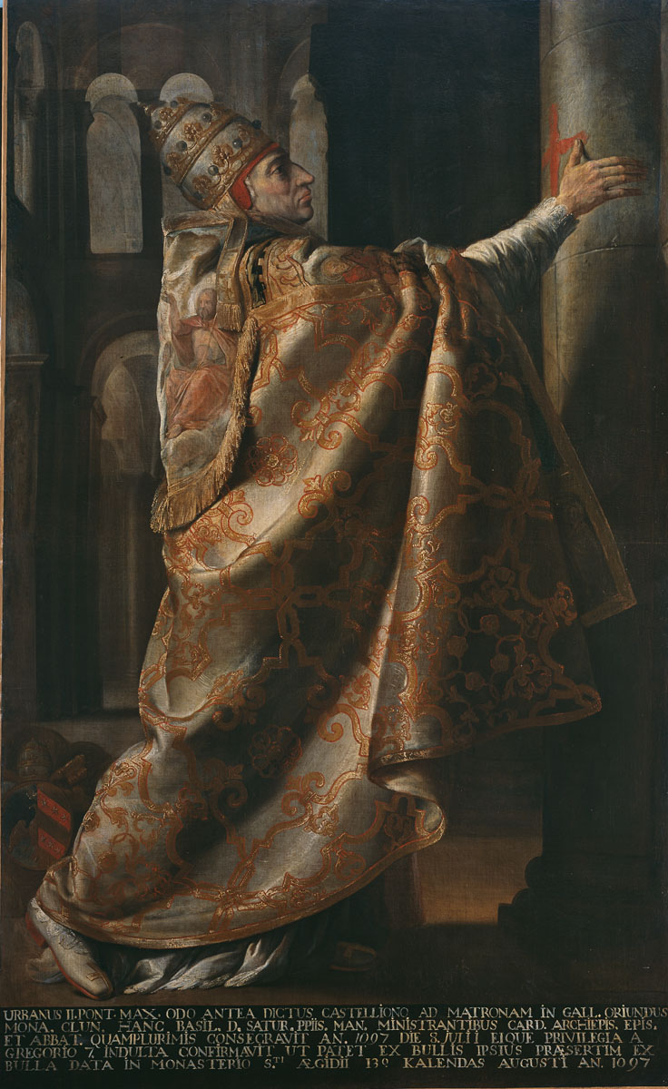 Foi o próprio Papa Urbano Il o primeiro grande arauto das cruzadas. Os muçulmanos turcos ameaçavam o império cristão de Constantinopla. O imperador Aleixo se voltou então ao Ocidente para pedir ajuda e Urbano II atendeu seu pedido: convocou as forças da cristandade, convidando-as a socorrer com as armas os irmãos gregos e a seguir para a terra de Israel para proteger os peregrinos cristãos de ataques de muçulmanos. No ano de 1096, presidindo o Concílio de Clermont, proclamou a primeira cruzada: “Irmãos, exército cristão, exército invencível, que tem por chefe Jesus Cristo, (…) combatam pela sua Jerusalém, batalhem e vençam os turcos!”.[37]