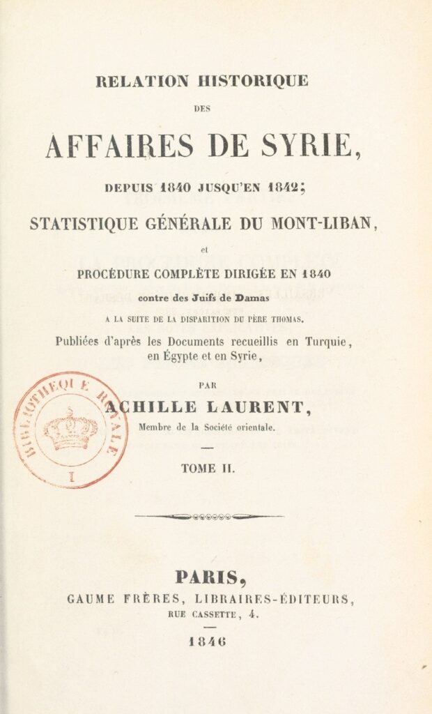 [5] Rélation historique des affaires de Syrie (Gaume Frères, 1846).