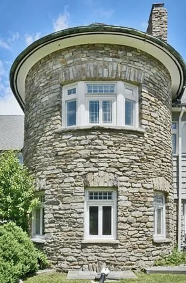 “Mansão em estilo Queen Anne de 1900, construída em pedra e madeira, localizada em um terreno de 10 acres, convertida em restaurante em 1980.