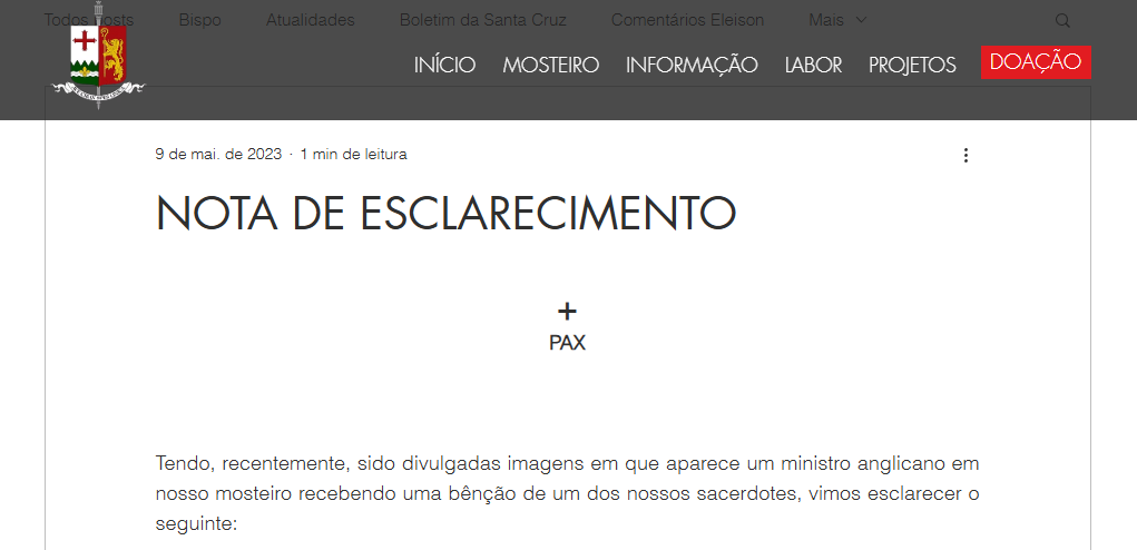Tendo, recentemente, sido divulgadas imagens em que aparece um ministro anglicano em nosso mosteiro recebendo uma bênção de um dos nossos sacerdotes, vimos esclarecer o seguinte: