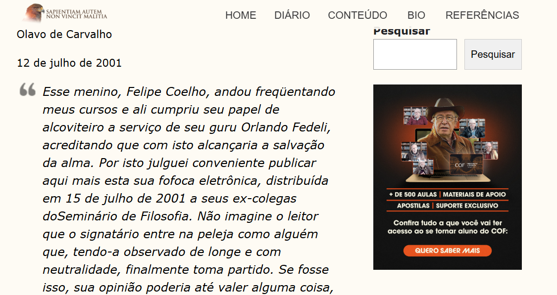 Estranhamente, ninguém fala mais dele. Como o melhor aluno do mestre da Montfort caiu no esquecimento? Ora, é isso mesmo a idéia de “gatekeeping”. Felipe Coelho teve seu legado ocultado porque aderiu ao sedevacantismo. Perderam o melhor aluno para o sedevacantismo, e a partir disso compreendemos o ressentimento deles contra a única posição teológica correta. O site sedevacantista Acies Ordinata do Felipe Coelho foi responsável por quebrar o monopólio intelectual da Montfort, e até hoje eles se recusam a comentar sobre o caso publicamente; mas caso alguém lhes pergunte sobre aquela época de forma mais incisiva, limitam-se a explicar o caso em pequenas notas esparsas e em brevíssimas conversações privadas sobre o aluno de ouro que os abandonou.