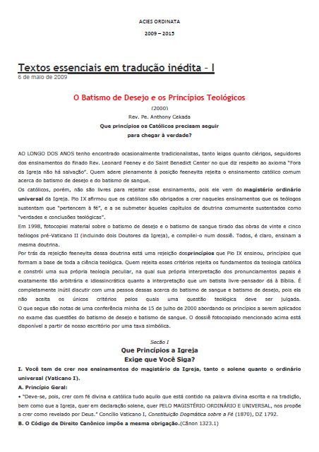 18 de abril de 2012 às 8:29 Seria uma pena ter que deixar de usar títulos tão bonitos como: “Luzeiros da Igreja em língua portuguesa” ou “Textos essenciais em tradução inédita”. Entretanto, trabalhos como – As Sagrações Episcopais sem Mandato Apostólico em questão – ficam praticamente ocultos, sendo possível acessá-las somente através de demorada busca ou via Google. - N. B. Guarinelo Says: