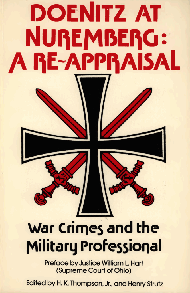 Nos Estados Unidos, H. K. Thompson Jr. e Henry Strutz, com um prefácio do juiz da Suprema Corte de Ohio William L. Hart, editaram um livro com o título Doenitz at Nuremberg: A Re-Appraisal (“Dönitz em Nuremberg: Uma Reavaliação”) (Institute for Historical Review, 1983). Só para avivar a memória: o grão-almirante Karl Dönitz, como sucessor de Hitler, determinou a capitulação das forças armadas alemãs. Durante a maior parte da guerra, ele fôra o comandante supremo da marinha de guerra germânica. O Tribunal Militar Internacional de Nuremberg condenou Dönitz a 10 anos de prisão, da qual foi libertado em 1956.