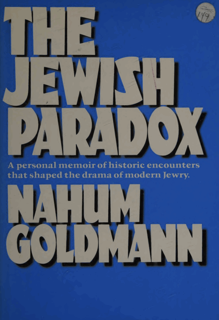Mesmo tendo havido pronunciamentos como os do rabino Abraham Cronbach, que em março de 1943 escreveu ao jurista hebreu [Joseph M.] Poskauer: “Nós queremos direitos humanos não só para judeus. Nós os queremos para todas as pessoas. Se os exigirmos só para judeus, isso seria uma luta contra nós próprios, seria baixo e ordinário”, não se pode deixar de acreditar que o Tribunal Militar Internacional de Nuremberg foi uma orquestração sionista. Nahum Goldmann, durante muitos anos presidente da Organização Sionista Mundial, afirmou isso em seu livro Das jüdische Paradox (“O paradoxo judeu”), editado em 1978 em Colônia. Ele disse que no Congresso Sionista Mundial, realizado em Nova Iorque durante a guerra, foi criado um instituto para assuntos judaicos, sob direção de dois importantes judeus lituanos, os irmãos Jacob e Nehemiah Robinson. Segundo Goldmann, eles desenvolveram os planos para duas ideias revolucionárias: o tribunal de Nuremberg e o ressarcimento alemão.[3]