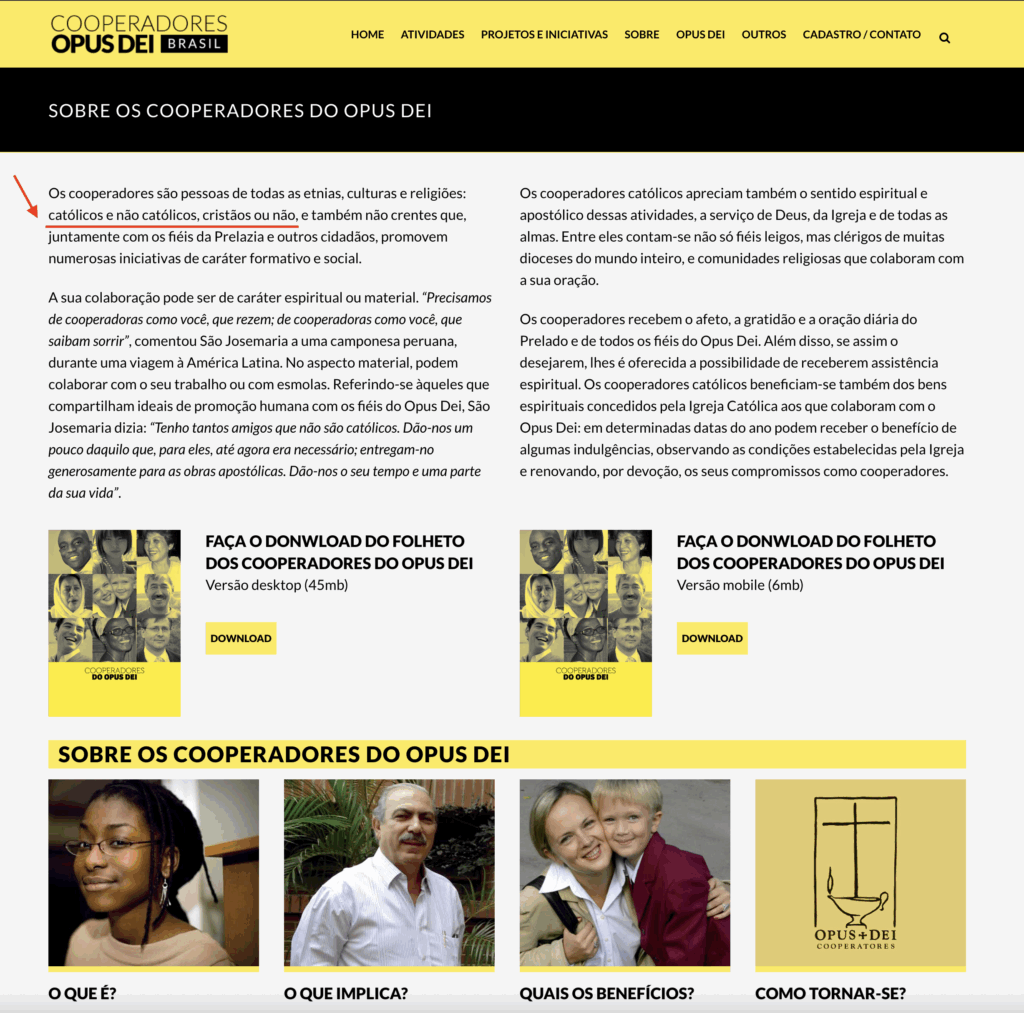 Se alguém quiser saber qual é o projeto de poder do Opus Dei, está convidado a conhecer as suas atividades, para que possa ouvir pessoalmente o que ali se diz. Fala-se de caridade, de excelência nas virtudes, de vida de oração, de aceitar com alegria as contrariedades, de castidade, de trabalhar com competência etc.