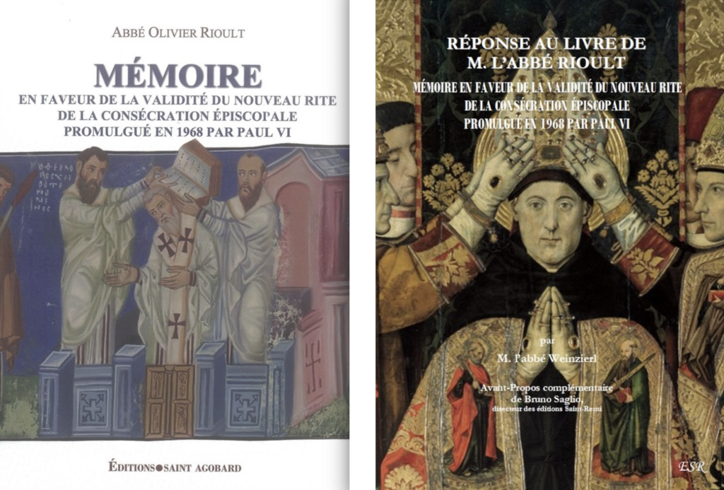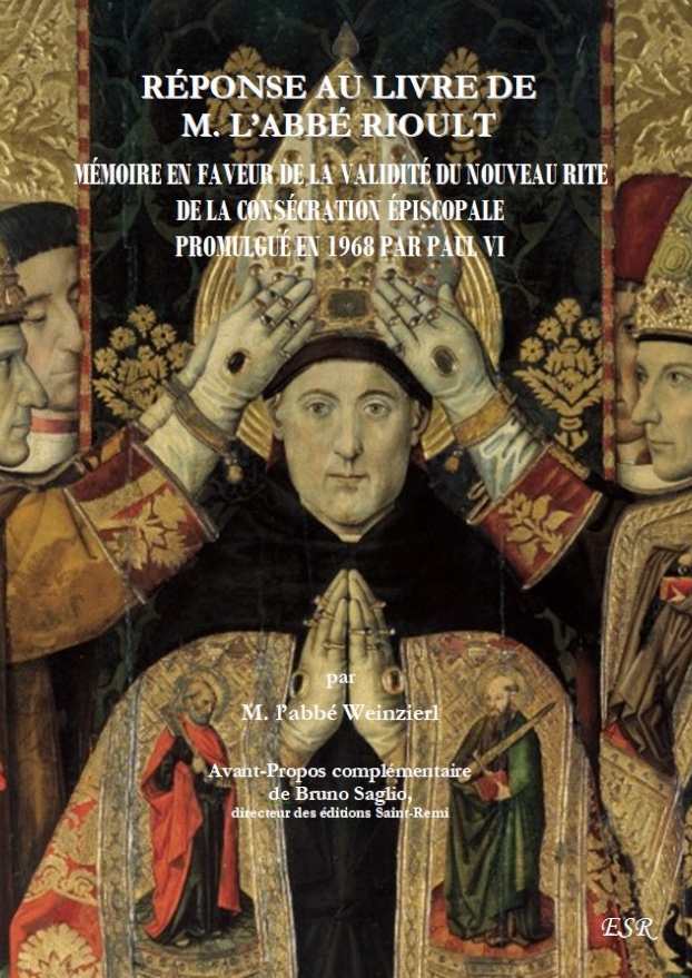 O livro Mémoire en faveur de la validité du nouveau rite de la consécration épiscopale promulgué en 1968 par Paul VI (“Memória em favor da validade do Rito de Consagração Episcopal promulgado em 1968 por Paulo VI”), escrito pelo Padre Olivier Rioult, foi respondido pelo Padre Hermann Weinzierl em seu livro Réponse au livre de M. l’abbé Rioult: Mémoire en faveur de la validité du nouveau rite de la consécration épiscopale promulgué en 1968 par Paul VI (“Resposta ao livro do Padre Rioult: Memória em favor da validade do Rito de Consagração Episcopal promulgado em 1968 por Paulo VI”). A controvérsia entre os dois autores ocorreu em 2023 e persiste até os dias de hoje devido ao silêncio do Padre Rioult. Publicada pela célebre Editions Saint-Rémi, a maior editora católica tradicionalista francesa da atualidade, a resposta do Padre Weinzierl permanece vitoriosa no campo teológico e ainda mais no campo social: não há notícia de nenhum grupo ou movimento que tenha subscrito à tese rioultista. O efeito absolutamente reverso ocorreu: os franceses tornaram-se ainda mais radicais na negação dos novos ritos de sagração episcopal. Essa rejeição espontânea dos católicos franceses é consequência de décadas de estudos promovidos pelo comitê Rore Sanctifica e que ainda vivem na mentalidade tradicionalista da Gália. Para dar notícia da controvérsia aos povos de língua portuguesa, traduzimos alguns excertos da resposta do Padre Hermann ao Padre Rioult, mas alertamos que a breve leitura de alguns parágrafos do livro não substitui a leitura completa da obra, a qual estará disponível abaixo, assim como os documentos essenciais do invicto comitê Rore Sanctifica.