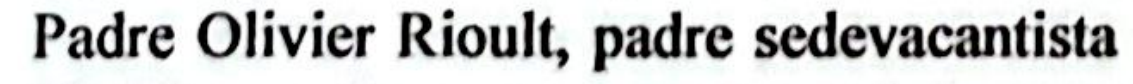 PADRE OLIVIER RIOULT E O SEDEVACANTISMO