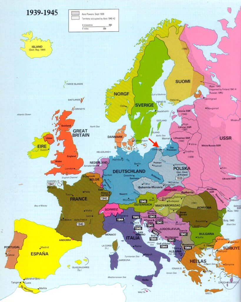 Em 1919 a Alemanha fôra obrigada a assinar o Tratado de Versailles, depois de ter deposto as armas ao término da Primeira Guerra Mundial. Muitos estudiosos e historiadores concluem que ali fôra aceso o estopim da bomba que eclodiria vinte anos depois. Anexei algumas imagens que mostram a Europa Central antes do Tratado, depois dele e após a Segunda Guerra.